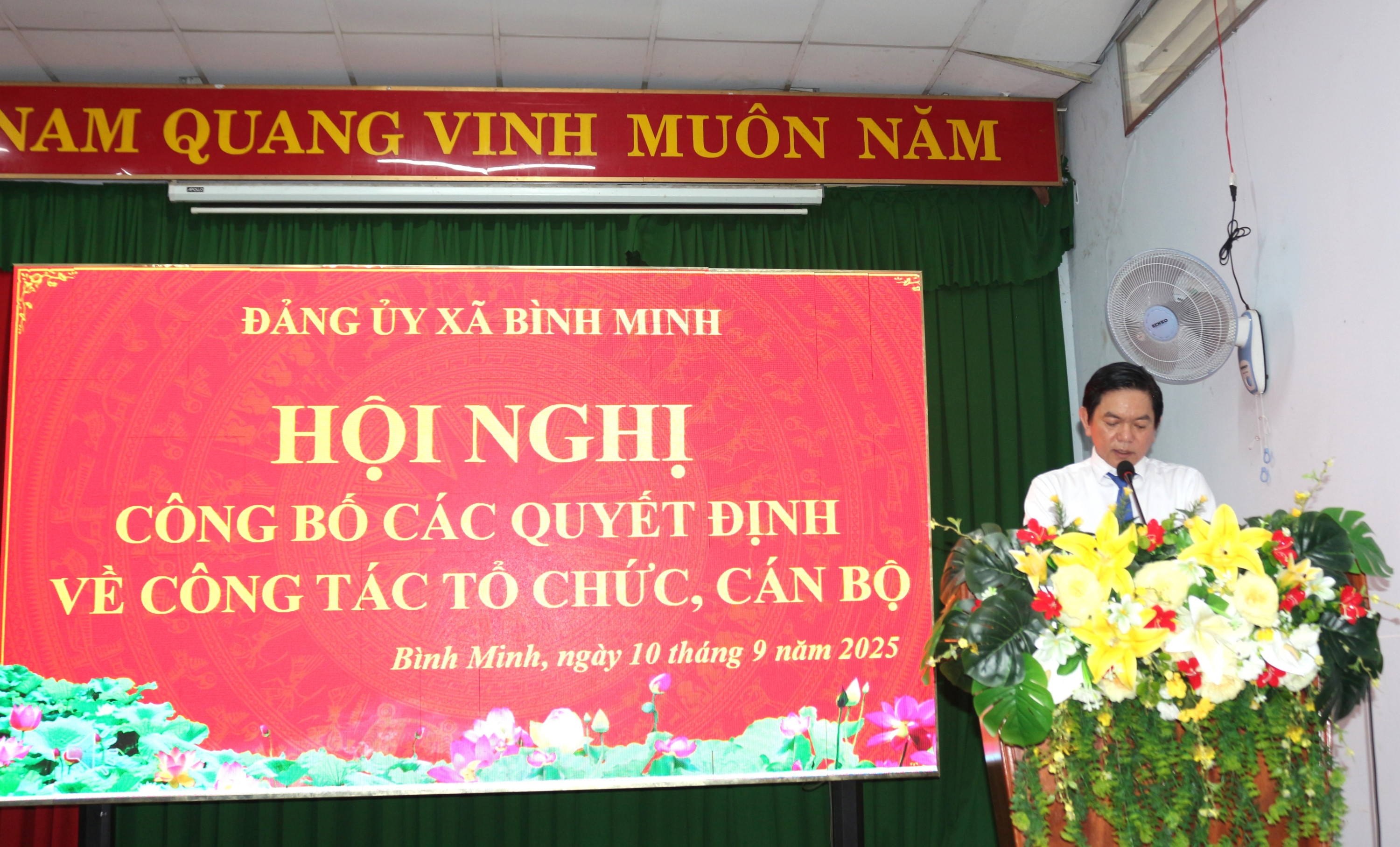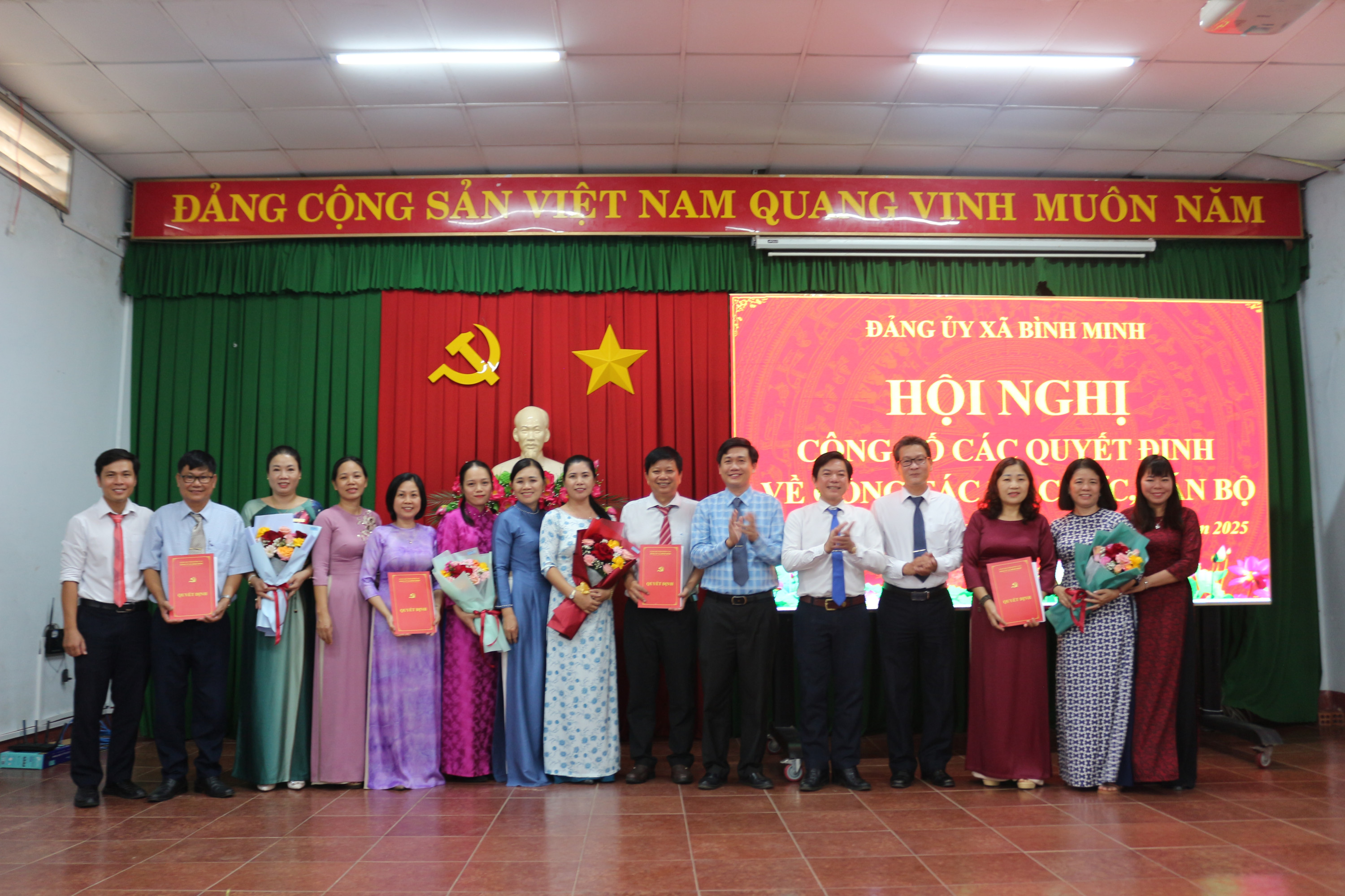 Chiều 10/9/2025, Đảng ủy xã Bình Minh tổ chức Hội nghị công bố các Quyết định về tổ chức Chi bộ trường học, phân công nhân sự và trao quyết định nghỉ hưu, thôi việc cho cán bộ, công chức.