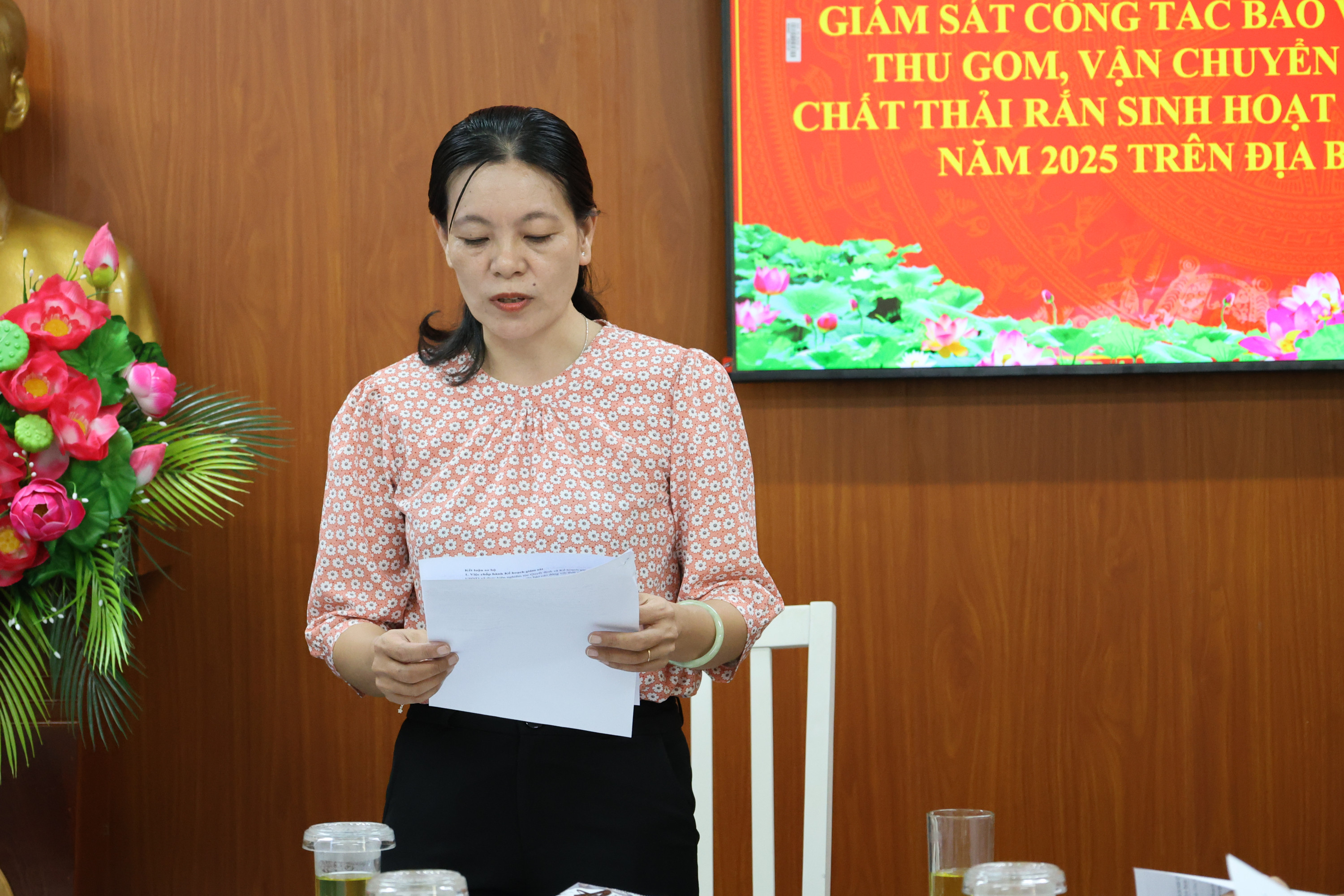 Kết luận buổi làm việc, bà Trần Thị Gái - Phó Trưởng ban KT-NS HĐND xã, Trưởng đoàn giám sát đề nghị tăng cường tuyên truyền, nâng cao ý thức, trách nhiệm của người dân trong bảo vệ môi trường; thường xuyên kiểm tra, giám sát và nhắc nhở việc phân loại rác tại nguồn; đồng thời nâng cao tỷ lệ hộ dân đăng ký thu gom rác.