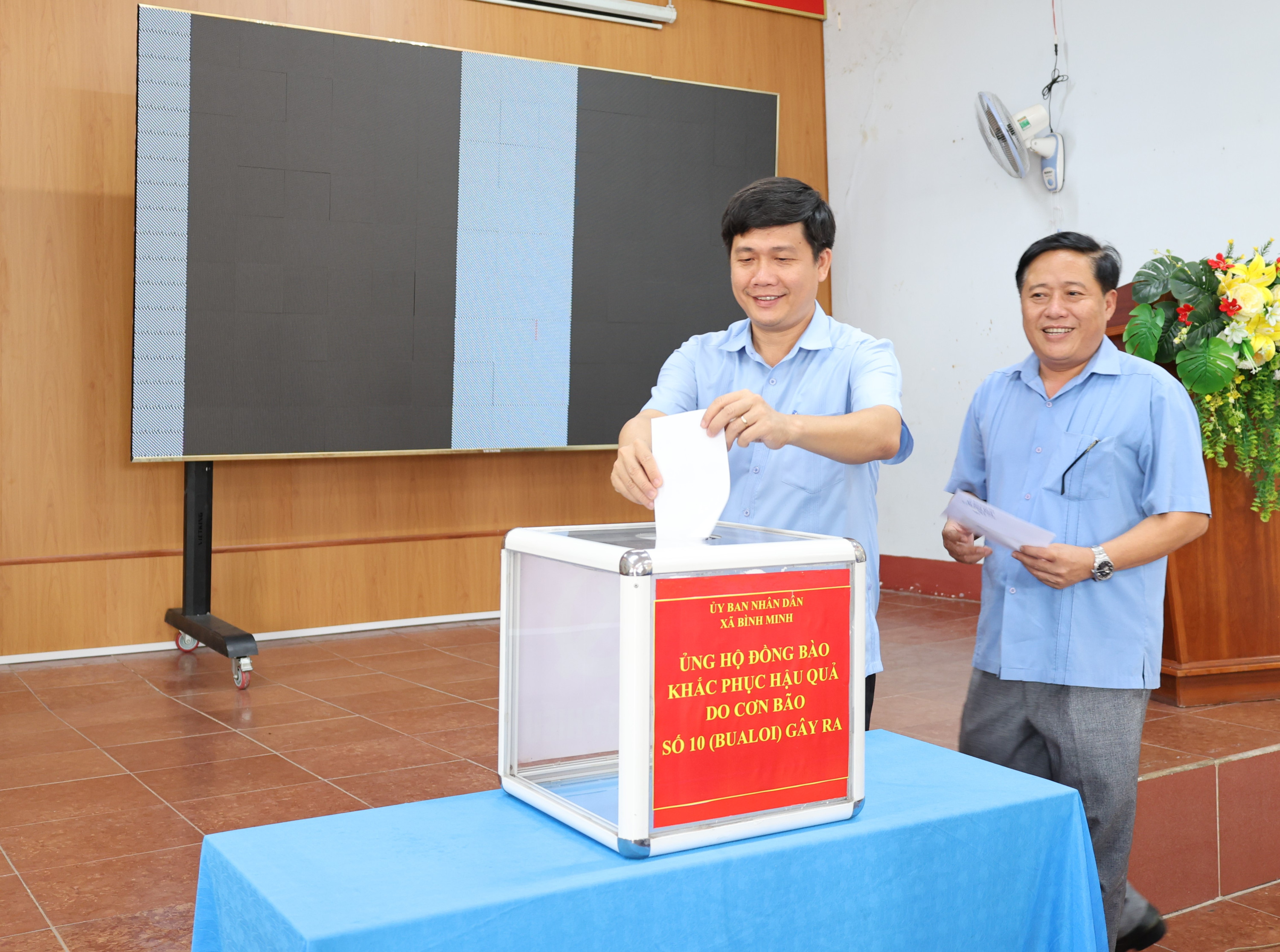 Trước khi tham gia Hội nghị giao ban UBND xã mở rộng 9 tháng đầu năm 2025, UBND xã Bình Minh tổ chức phát động quyên góp ủng hộ đồng bào bị ảnh hưởng bởi cơn bão số 10 (Bualoi) hưởng ứng Lời kêu gọi của Ủy ban MTTQ Việt Nam xã Bình Minh..