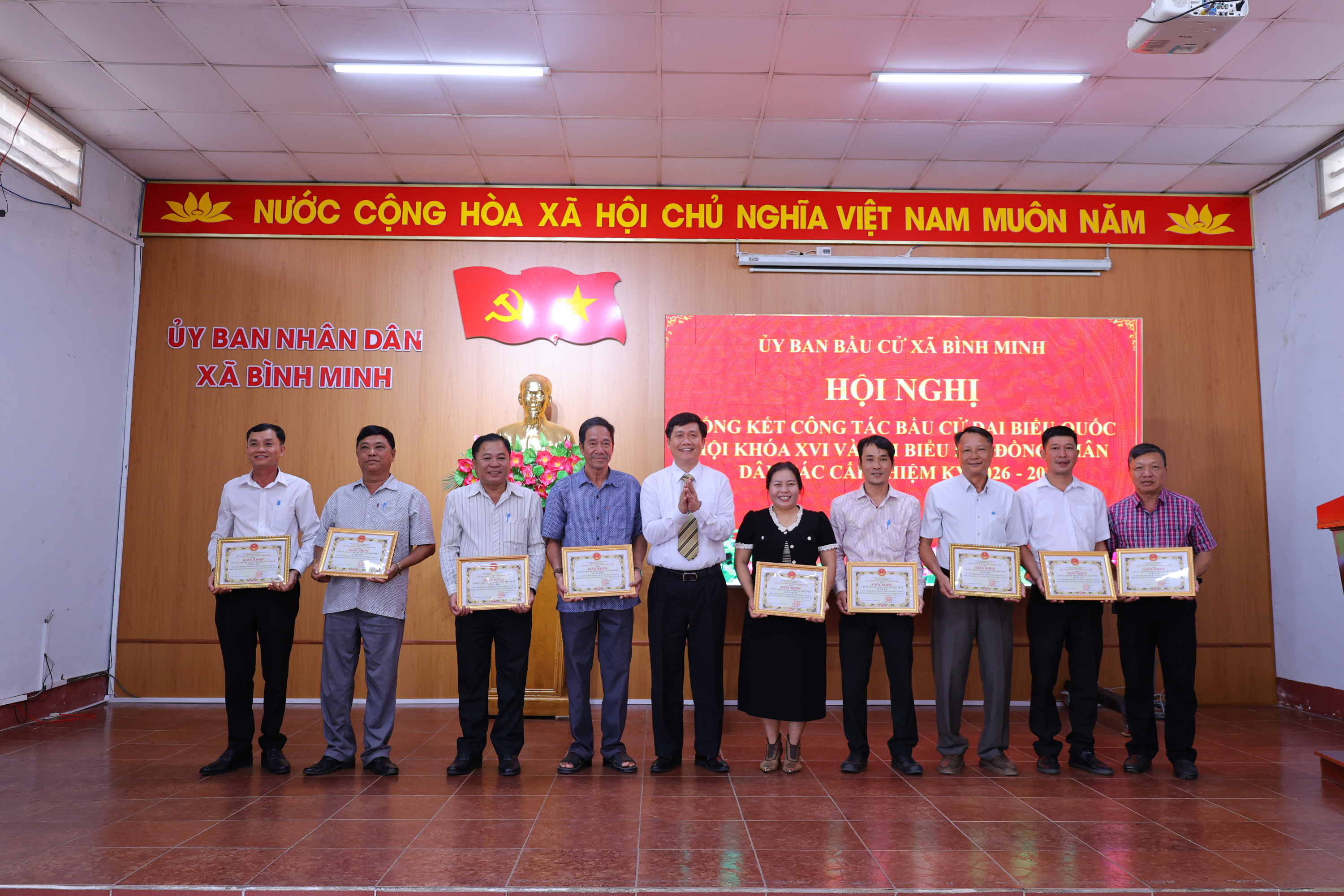 Dịp này, Uỷ ban bầu cử xã Bình Minh đã khen thưởng cho 26 tập thể, 131 cá nhân có thành tích xuất sắc trong công tác bầu cử Đại biểu Quốc hội khoá XVI và Đại biểu Hội đồng nhân dân các cấp nhiệm kỳ 2026-2031.
