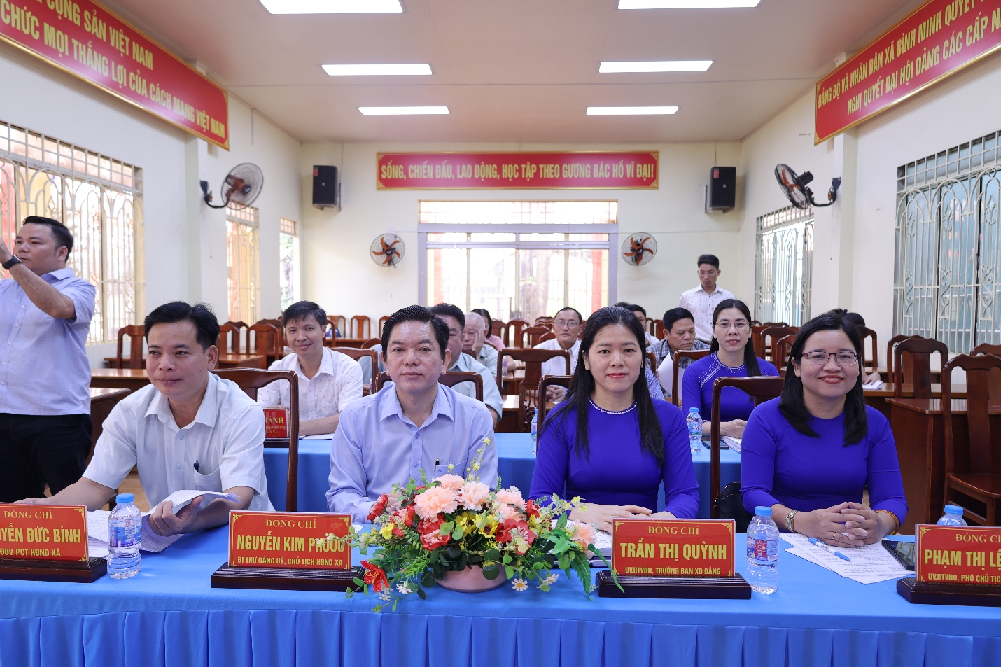 Đồng chí Bùi Văn Đoàn - Ủy viên Ban Thường vụ Đảng ủy, Chủ tịch Ủy ban MTTQVN xã, Đồng chí Trần Thị Thanh Phương - Đảng ủy viên, Phó chủ tịch thường trực Ủy ban MTTQVN xã chủ trì Hội nghị. Tham dự hội nghị có đồng chí Nguyễn Kim Phước - Bí thư Đảng ủy, Chủ tịch HĐND xã; đồng chí Trần Thị Quỳnh - Ủy viên Ban Thường vụ Đảng ủy, Trưởng Ban Xây dựng Đảng; đồng chí Phạm Thị Lệ Thủy - Ủy viên Ban Thường vụ Đảng ủy, Phó Chủ tịch UBND xã; đồng chí Nguyễn Đức Bình - Đảng ủy viên, Phó Chủ tịch HĐND xã.