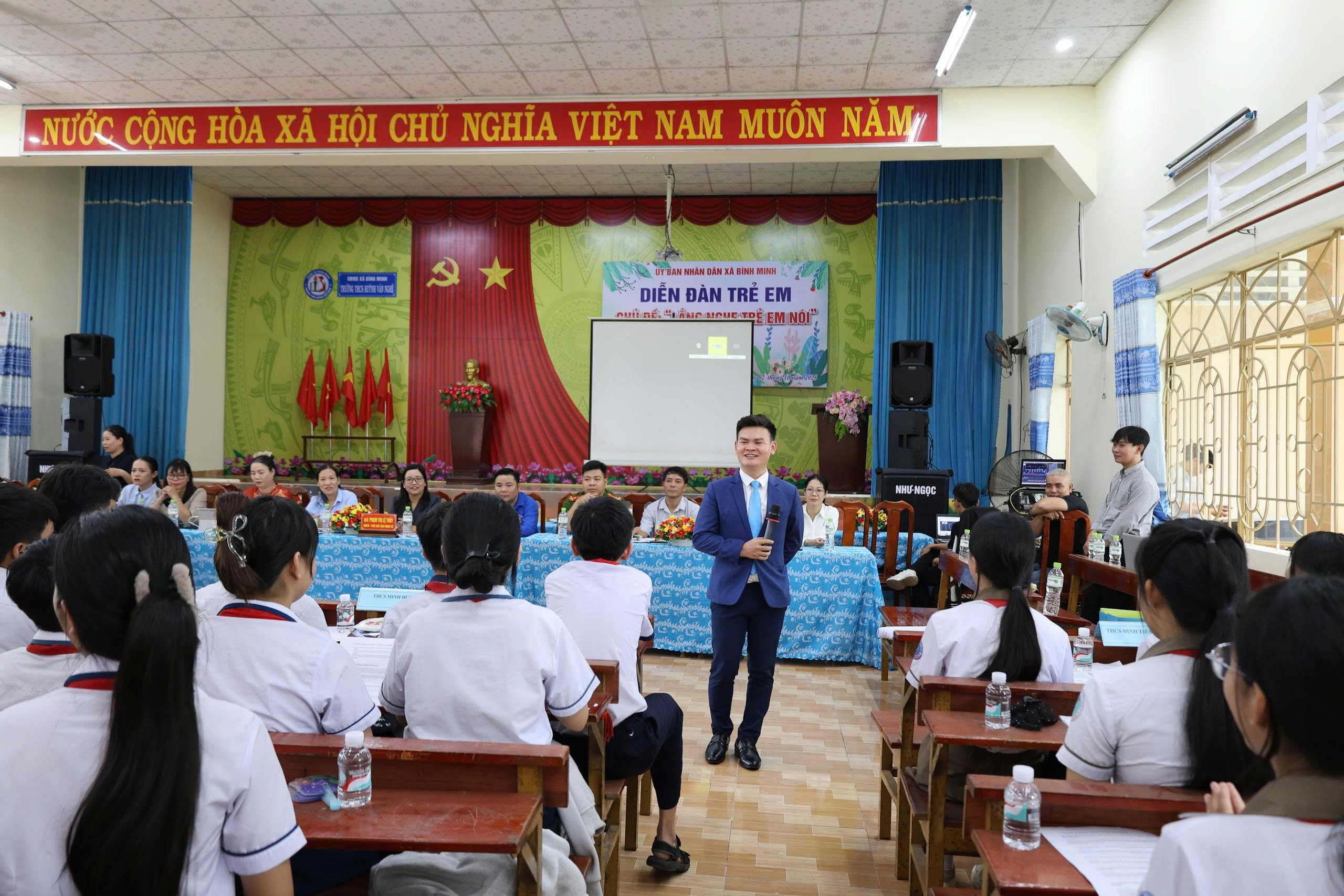 Chiều 2/10, UBND xã Bình Minh tổ chức Diễn đàn trẻ em năm 2025 với chủ đề “Lắng nghe trẻ em nói”. Đến dự có thầy Hoàng Bảo Trường - Trưởng khoa Công tác xã hội (Học viện Phụ nữ Việt Nam), Tổng Thư ký Hội đồng Giảng huấn Kỹ năng mềm (Viện ứng dụng Khoa học tâm lý - giáo dục); bà Phạm Thị Lệ Thủy - Uỷ viên BTV Đảng uỷ, Phó Chủ tịch UBND xã, Trưởng ban tổ chức; lãnh đạo các ban ngành, đoàn thể và 150 học sinh các trường THCS trên địa bàn.