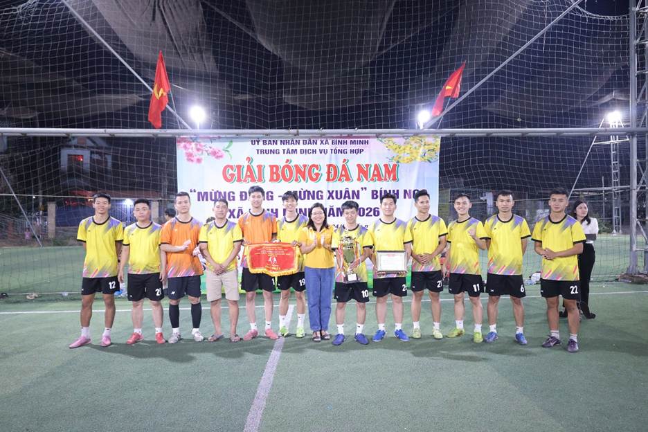 Kết thúc giải đấu, Ban Tổ chức đã khen thưởng các đội đạt thành tích. Đội bóng ấp Bùi Chu thi đấu xuất sắc, giành chức vô địch Giải bóng đá nam “Mừng Đảng - Mừng Xuân” xã Bình Minh năm 2026; hạng Nhì thuộc về đội bóng Công an xã; đội bóng Ban Chỉ huy Quân sự xã và ấp Tân Bắc đồng hạng Ba.