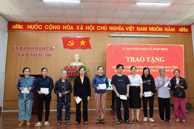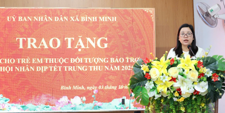 Chiều 3/10, UBND xã Bình Minh tổ chức trao quà Trung thu năm 2025 cho trẻ em thuộc diện bảo trợ xã hội. Đến dự có bà Phạm Thị Lệ Thủy - Ủy viên Ban Thường vụ Đảng ủy, Phó Chủ tịch UBND xã; bà Trần Thị Nhiên - Đảng ủy viên, Trưởng phòng Văn hóa - Xã hội; ông Phạm Quang Thái - Phó Trưởng phòng Văn hóa - Xã hội.