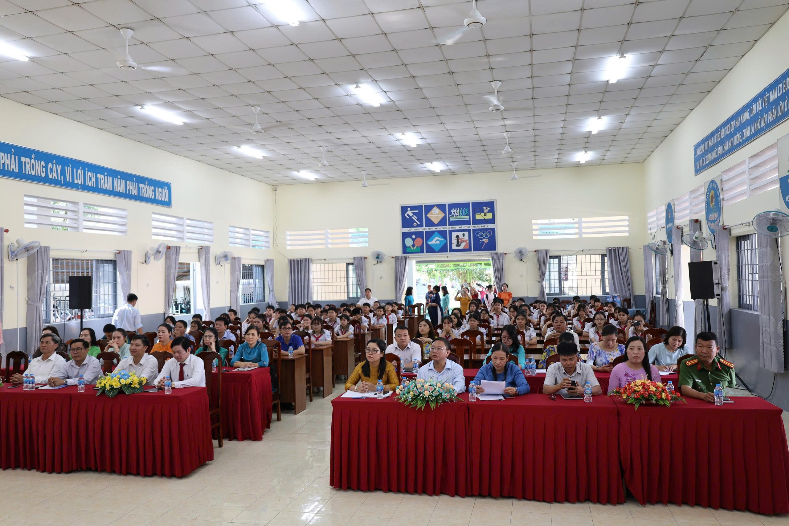 Đến dự buổi lễ có: đồng chí Nguyễn Kim Phước - Bí thư Đảng ủy, Chủ tịch HĐND xã; đồng chí Phạm Thị Lệ Thủy - Ủy viên Ban Thường vụ, Phó Chủ tịch UBND xã; cùng đại diện các ban, ngành, đoàn thể, lãnh đạo các ấp, trường học và giáo viên, học sinh Trường THCS Đinh Tiên Hoàng.