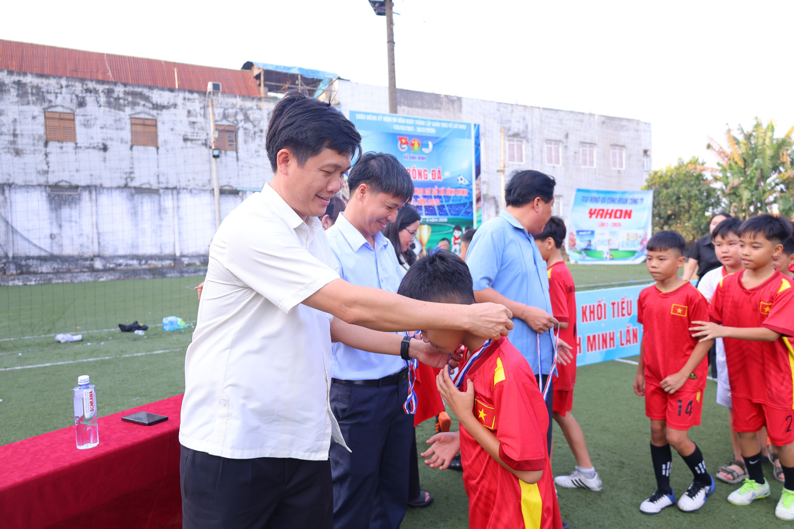 Lãnh đạo xã trao huy chương cho cầu thủ các đội