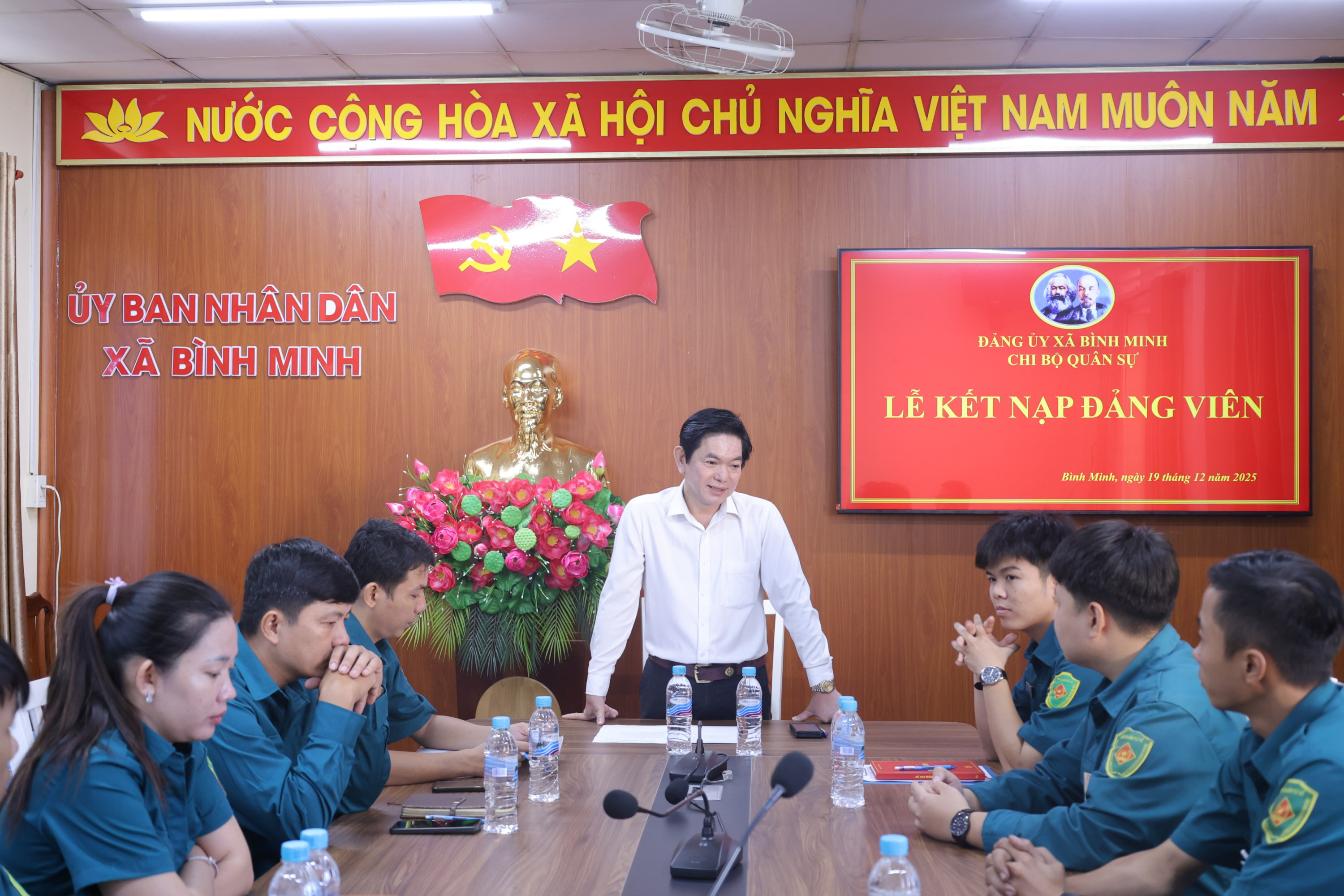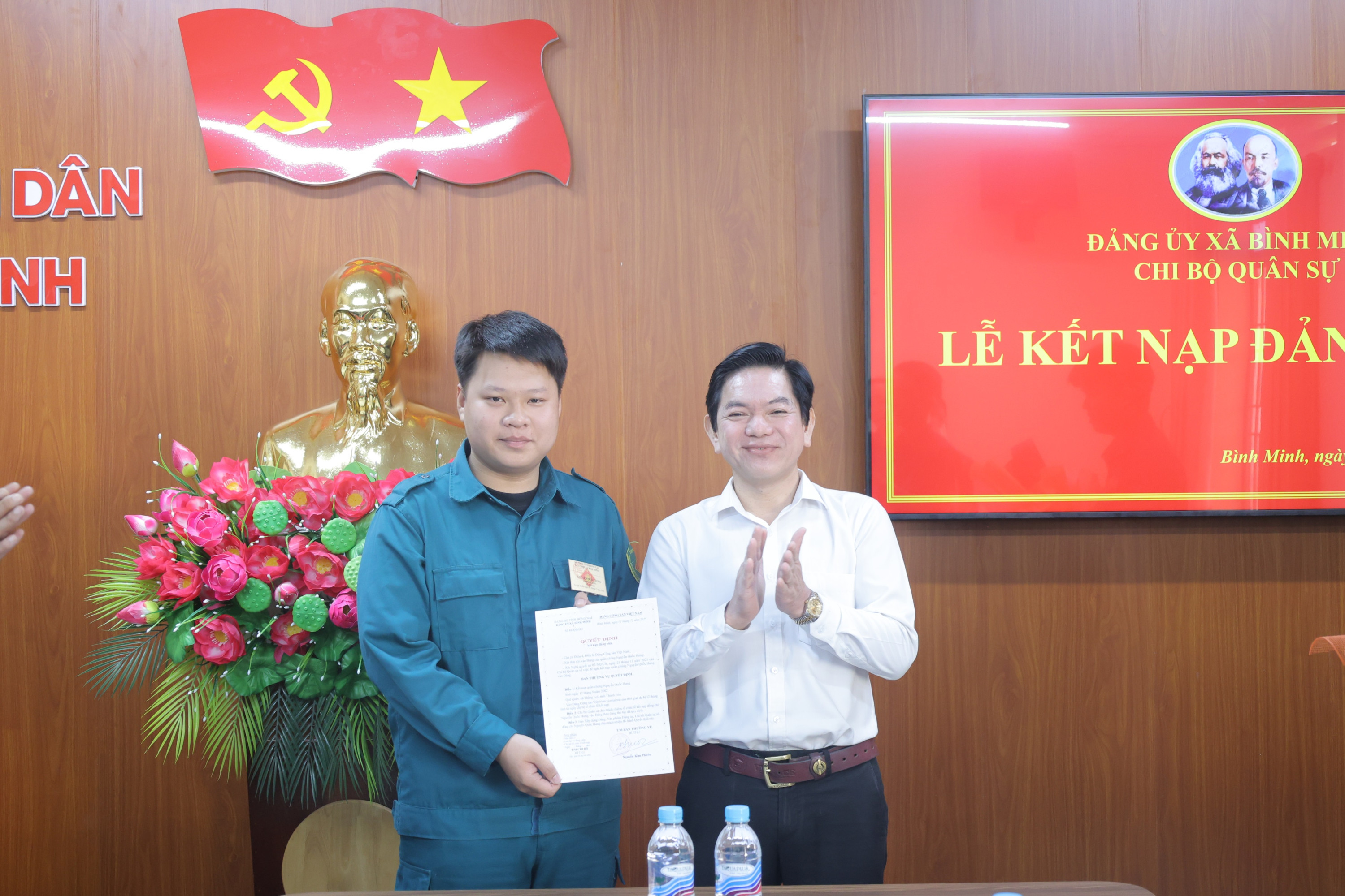 Sáng ngày 19/12, Chi bộ Quân sự xã Bình Minh tổ chức Lễ kết nạp đảng viên. Tham dự buổi lễ có đồng chí Nguyễn Kim Phước – Bí thư Đảng ủy, Chủ tịch HĐND xã, Bí thư Chi bộ cùng toàn thể đảng viên Chi bộ Quân sự xã.