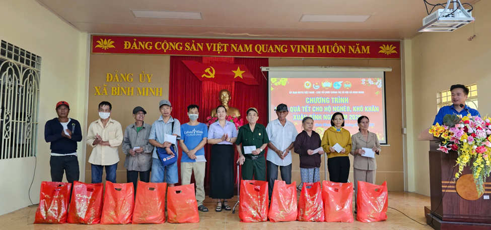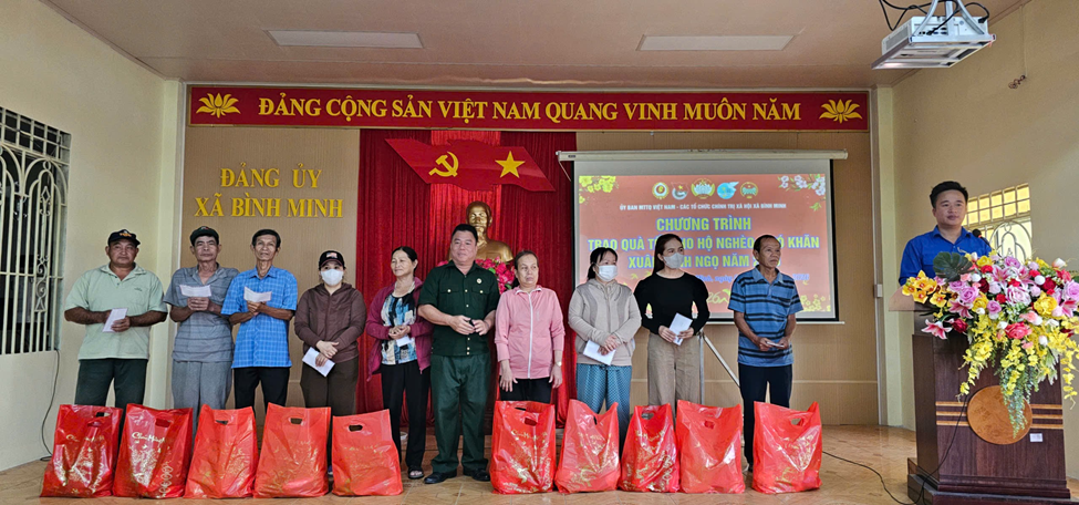Chương trình trao quà tết cho các hộ có hoàn cảnh khó khăn trên địa bàn xã Bình Minh nhân dịp tết Nguyên đán Bính Ngọ 2026