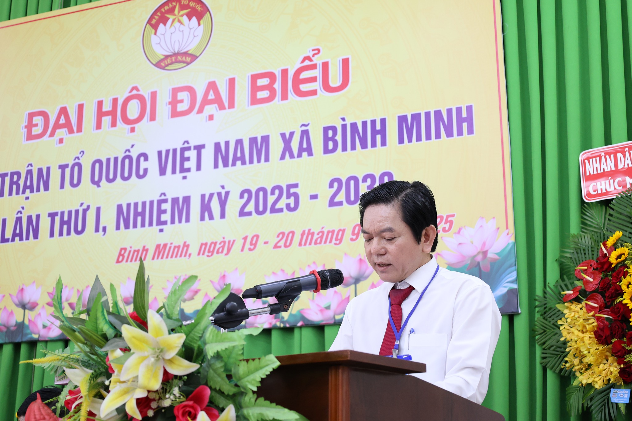 Sáng ngày 20/9/2025, Đại hội đại biểu Mặt trận Tổ quốc Việt Nam xã Bình Minh lần thứ I, nhiệm kỳ 2025 - 2030 tiếp tục làm việc phiên thứ hai. Đến dự và chỉ đạo Đại hội có đồng chí Nguyễn Tất Độ - Phó Chủ tịch UBMTTQ tỉnh Đồng Nai. Ở cấp xã, đến dự có đồng chí Nguyễn Kim Phước - Bí thư Đảng ủy, Chủ tịch HĐND xã; đồng chí Trần Quý Văn - Phó Bí thư Thường trực Đảng ủy; đồng chí Trần Đức Hòa - Phó Bí thư Đảng ủy, Chủ tịch UBND xã, cùng các đồng chí Ủy viên Ban Thường vụ, Ban Chấp hành Đảng bộ xã; đại diện MTTQ các xã và 120 đại biểu chính thức.