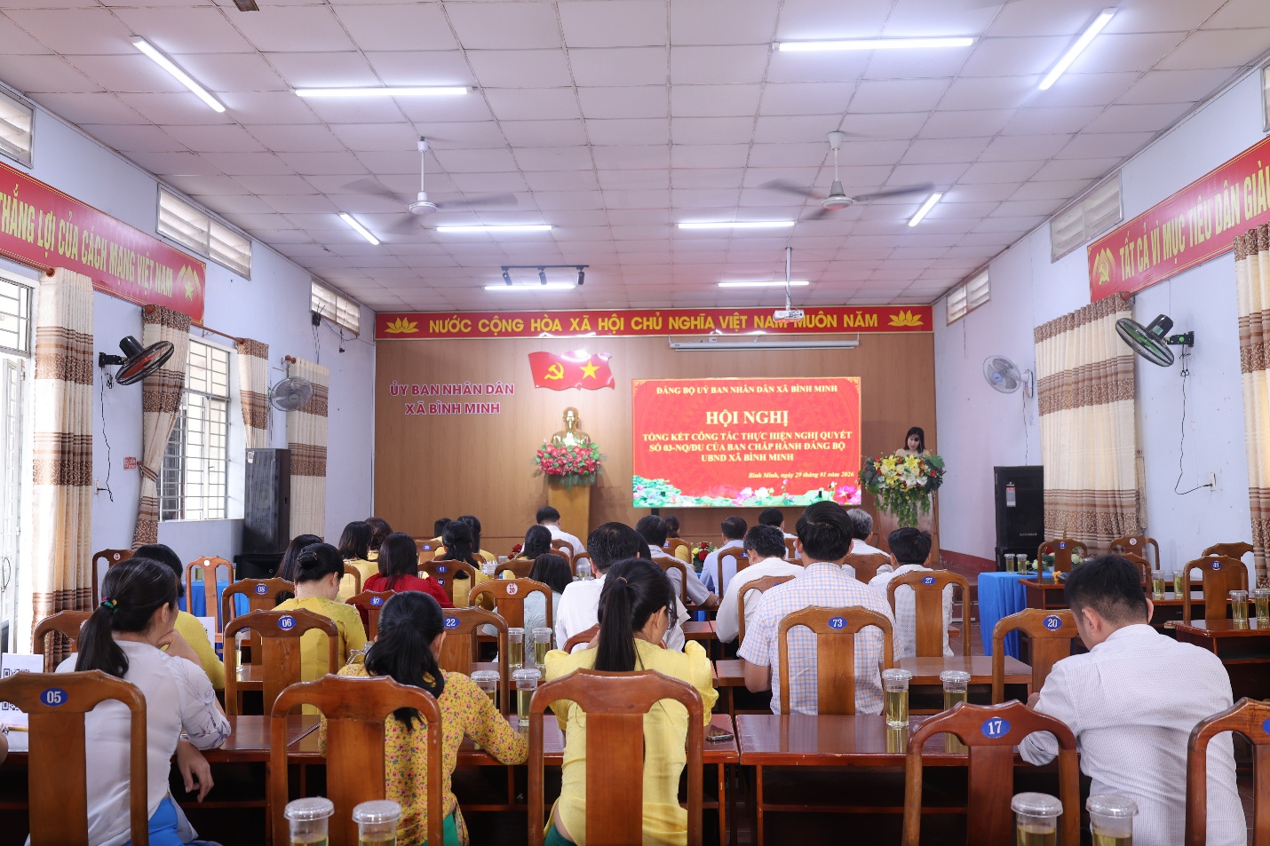 Sáng ngày 29/1 Đảng ủy UBND xã Bình Minh tổ chức Hội nghị tổng kết công tác thực hiện Nghị quyết số 03-NQ/ĐU của Ban chấp hành Đảng bộ UBND xã Bình Minh. Tham dự có đồng chí Trần Đức Hòa - Phó Bí thư Đảng uỷ, Chủ tịch UBND xã; Bí thư Đảng bộ UBND xã; đồng chí Phạm Thị Lệ Thuỷ- UV BTV Đảng uỷ, Phó chủ tịch UBND xã, Phó bí thư Đảng bộ UBND xã cùng toàn thể Đảng viên trong Đảng bộ UBND.