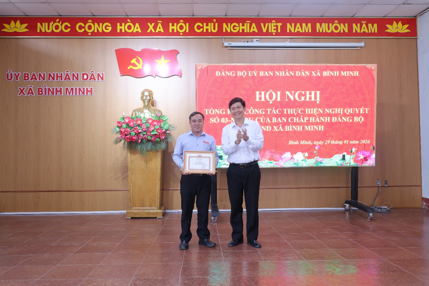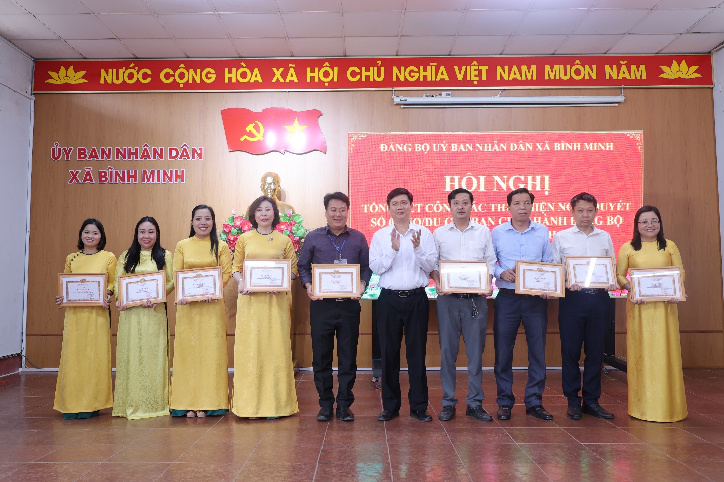 Dịp này, Đảng ủy UBND xã Bình Minh đã khen thưởng cho 01 tập thể và 09 cá nhân có thành tích xuất sắc trong năm 2025.