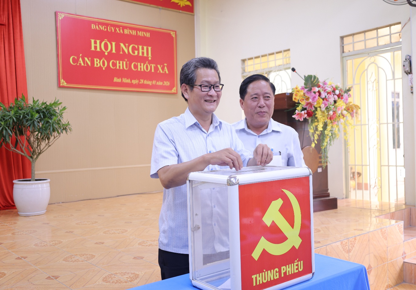 Chiều 28/1, Đảng ủy xã Bình Minh tổ chức Hội nghị cán bộ chủ chốt để thực hiện quy trình giới thiệu nhân sự tái cử các chức danh lãnh đạo HĐND và UBND xã nhiệm kỳ 2026-2031.