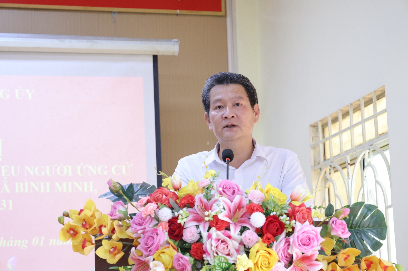 Tại hội nghị, đồng chí Trần Quý Văn - Phó Bí thư Thường trực Đảng ủy báo cáo tình hình và kết quả Hội nghị lấy ý kiến cử tri nơi công tác đối với người được dự kiến giới thiệu ứng cử đại biểu HĐND tỉnh Đồng Nai và HĐND xã Bình Minh, nhiệm kỳ 2026-2031.