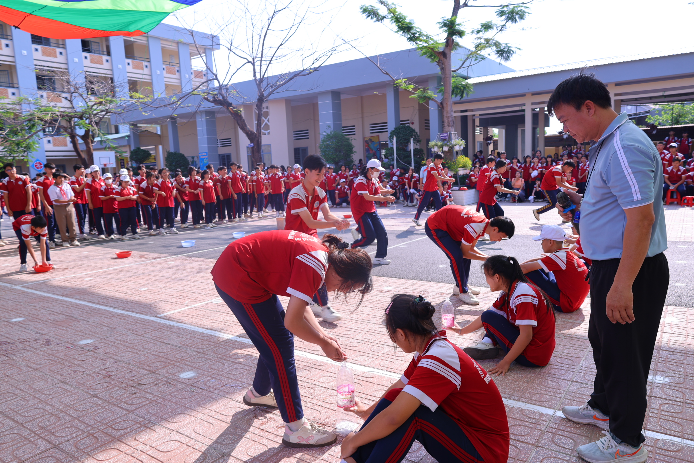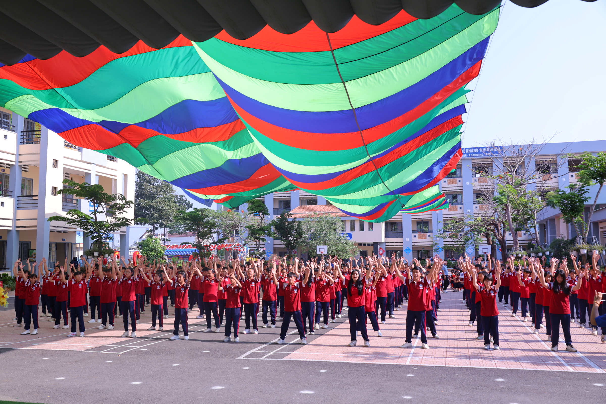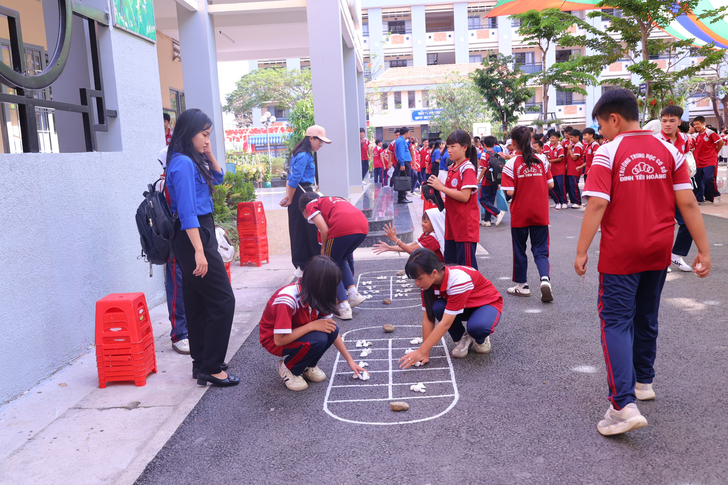 Điểm nhấn của ngày hội chính là màn đồng diễn sân trường của các em đội viên Trường THCS Đinh Tiên Hoàng, thể hiện tinh thần khỏe khoắn, đoàn kết và năng động của thiếu nhi. Bên cạnh đó, nhiều hoạt động vui chơi, trải nghiệm cũng được tổ chức tại các gian hàng trò chơi do Chi đoàn và Liên đội nhà trường chuẩn bị. Các em học sinh hào hứng tham gia, tạo nên một ngày hội thực sự ý nghĩa và đáng nhớ.